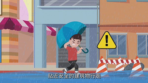 脚本: 尽量不要出门遇到暴雨极端天气,没有特殊情况尽量不要出门,待在家里比较安全。暴雨天安全注意事项不要接打手机如果人在户外遇到暴雨天气,一定注意不要接打手机,以防止被雷电击中,人也应该尽快找安全地点躲避暴雨。暴雨天安全注意事项3小心过积水路段遇到暴雨过积水路段时,一定要小心,无法过水时,一定要及时返回,不要强行蹚水,积水危险。